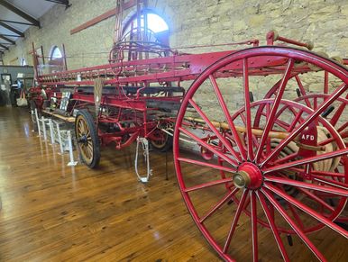 We have a large display of fire fighting equipment. Most noteable is the 1898 ladder truck purchased in the same year by the city. It was a horse driven machine that was later converted to be used by a gas powered truck.